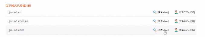 思路1:当我们拿到一个域名时,比如www.jmisd.cn,我们可能首先会去查询它的子域名,这是一个方向,这里我们提供另外一种思路,查询它的相关域名,方法是百度 域名查询,会有很多可以查询域名是否已被注册的网站,比如西部数码网站,我们进入后搜索jmisd,会显示以下3个域名已被注册,然后我们分别查看它们的whois信息、下方版权信息等,查看它们与是否与原网站有相同点,若有,说明这两个网站是同一个公司的,然后就为渗透这个网站找到了一条新路。